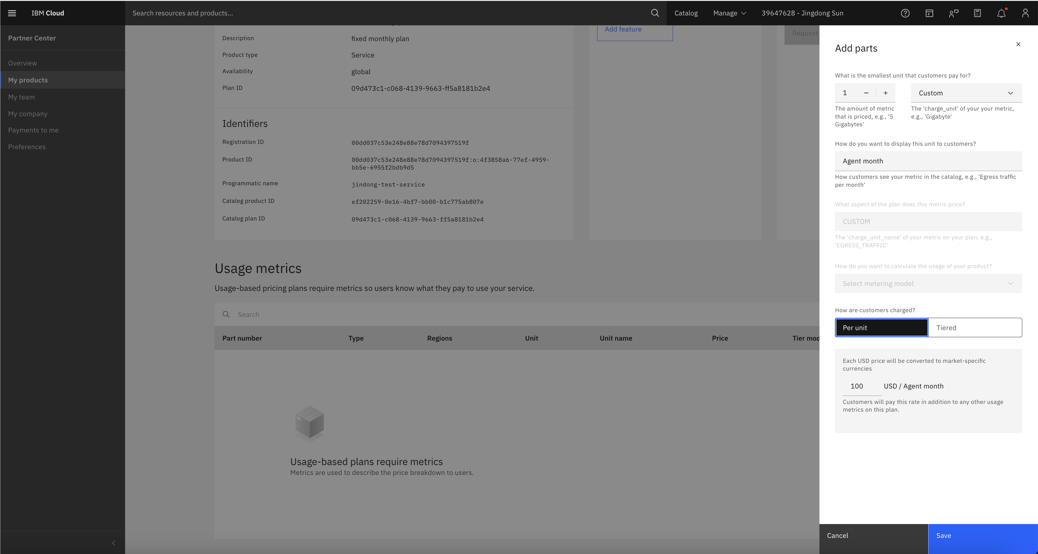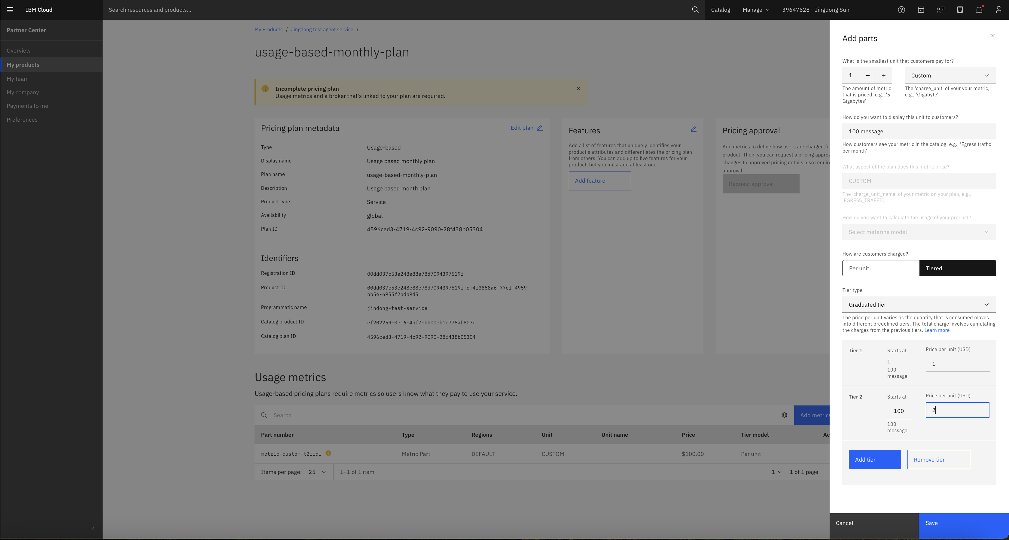 To enable customer purchases, sales workflows, and billing for partner agent services, you must register your agent offering in the IBM Cloud Catalog. As part of onboarding, you must define:- Price plans