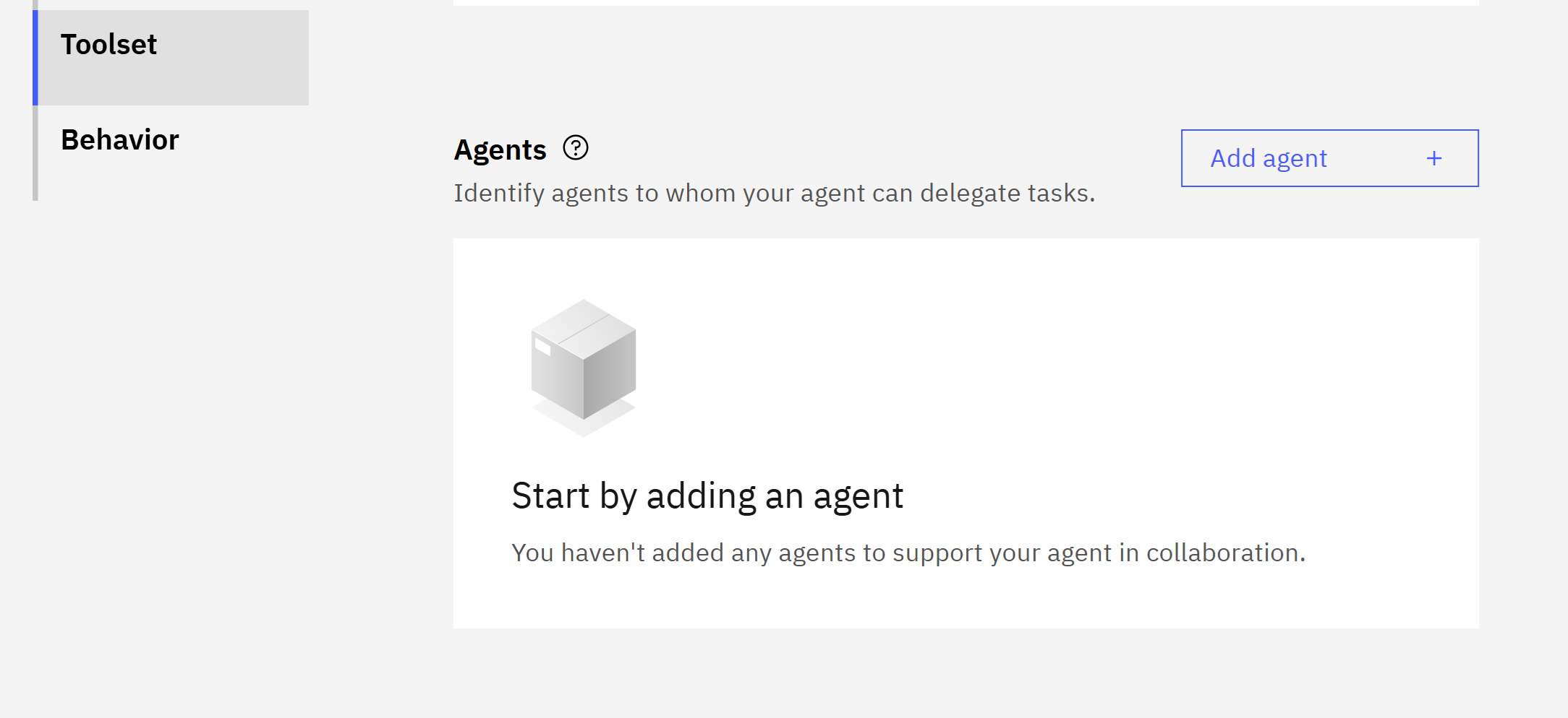 From the Toolset, click Add agent.
